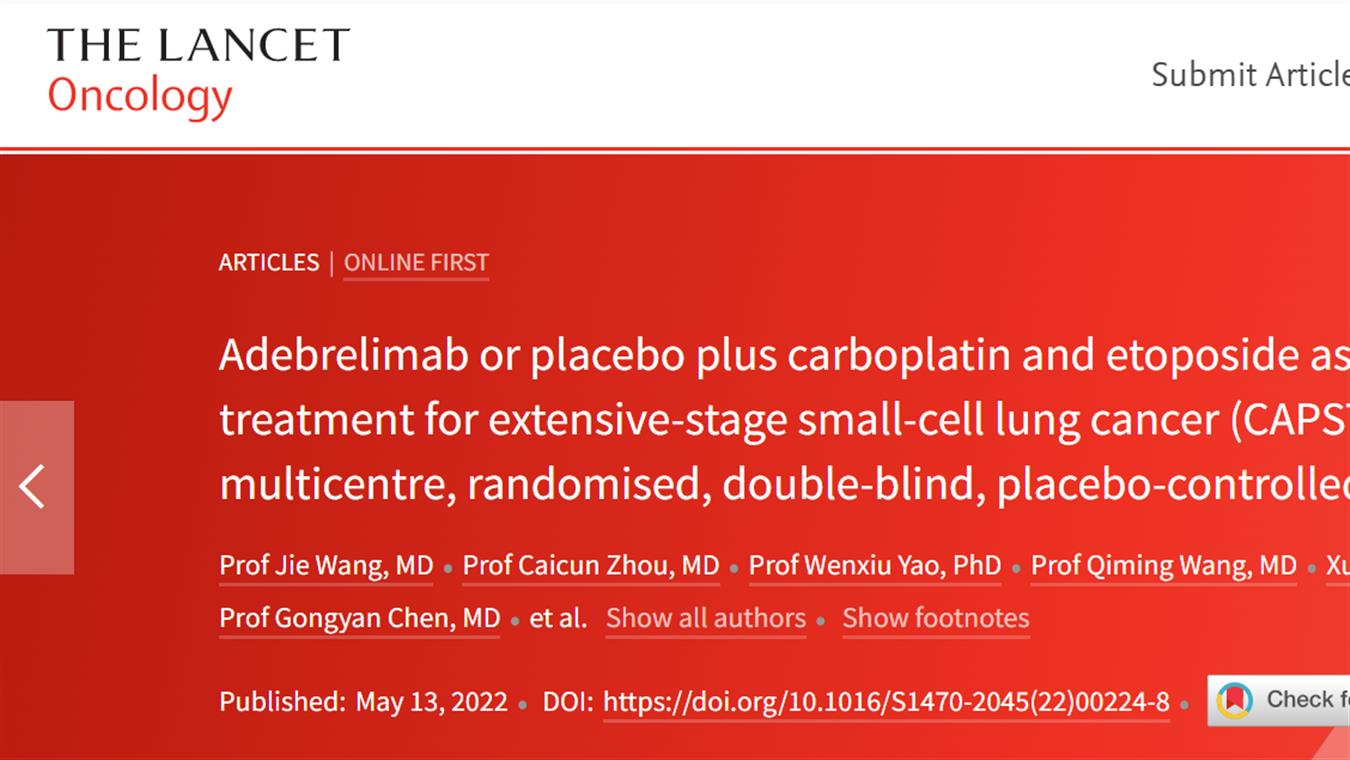 英国正版365卡瑞利珠单抗联合阿帕替尼最新研究成果荣登《柳叶刀·肿瘤》